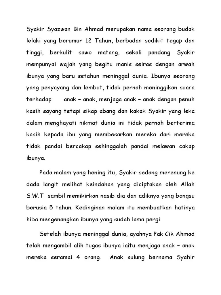Suatu ketika saya bermimpi bertemu almarhum ibu saya yang telah meninggal dunia satu tahun yang lalu. Inai di jari bersama cincin di jari manisnya yang menunjukkan dirinya. Orangtuaku sudah pergi dan sekarang aku tinggal dengan nenekku, nenekku yang tak mampu berjalan, nenekku yang tak mampu untuk bekerja. Tidak ada satu ekor burung pun yang mau berteman dengannya. Kadang aku ikut kakek memancing ikan untuk. Www.pinterest.com contoh cerpen haloo sahabat kita berjumpa kembali ya kali ini saya akan bagi yang berkaitan dengan cerita pendek atau cerpen ya tema yang aka aku bawakan kali ini tentang persahabatan pengalaman lucu dan cinta semacam contoh cerita pendek romantis. Permohonan mrsm 2022 tingkatan 1 & Ikatan saudara mengingatkan kita tentang 'siapa diri kita sebenarnya dan darimana kita berasal'. Kisah kasih sebuah kenangan yang slalu terbayang disaat aku dilanda kesunyian. Secara umum masyarakat kita sangat mementingkan kasih sayang terhadap sesamanya. Kebahagiaan ibu bapa terhadap anak yang taat dan bertanggungjawab. Ya di sini aku merawatnya dengan kasih sayangku, sekarang aku duduk di kelas 1 sma. Namun, langkahku membuat lukman terusik, terutama dalam kasus diah telah banyak menerima penderitaan, anakitu perlu bimbingan dan kasih sayang bukan.